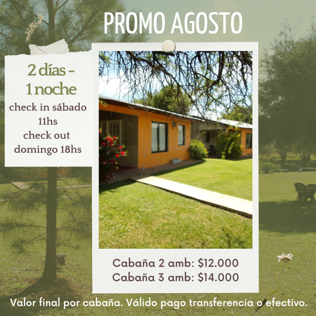 - Cabañas totalmente equipadas, hasta 5 personas.