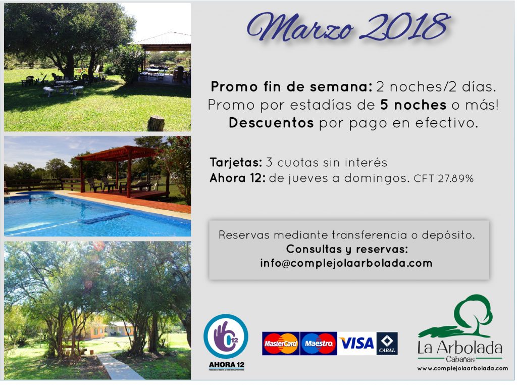Navegá en nuestro sitio web: https://complejolaarbolada.com/ para ver info y fotos de nuestro complejo, cabañas, parque, juegos, servicios.